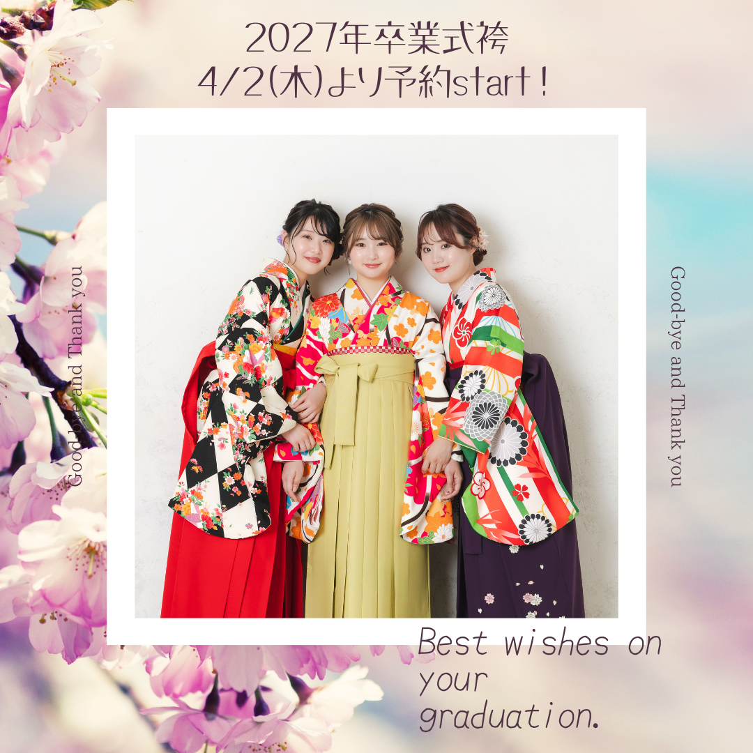4/2(木)より、2027年卒業式袴(2026年度卒業)のご予約がスタートいたします✨